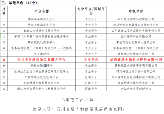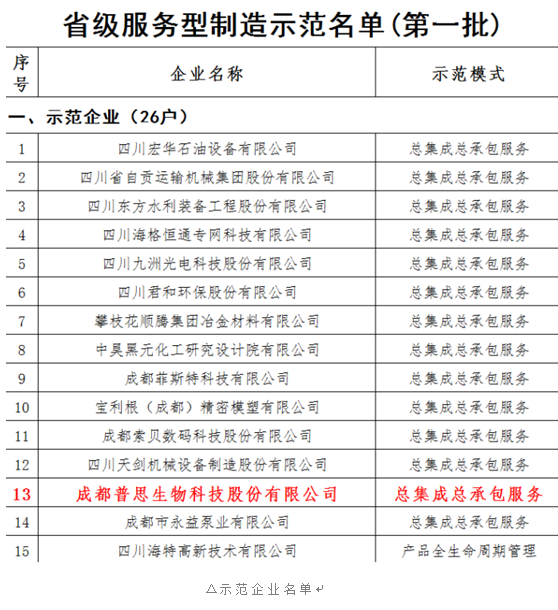 日前,成都普思生物科技股份有限公司作為川內(nèi)新三板藥物研發(fā)性企業(yè),被四川省經(jīng)信委評定為“四川省第一批服務(wù)型制造示范企業(yè)(項目、平臺)”,真可謂是雙喜臨門:一是以總集成總承包服務(wù)入圍服務(wù)型制造示范企業(yè);二是以四川省天然藥物公開服務(wù)平臺入圍服務(wù)型制造示范平臺。